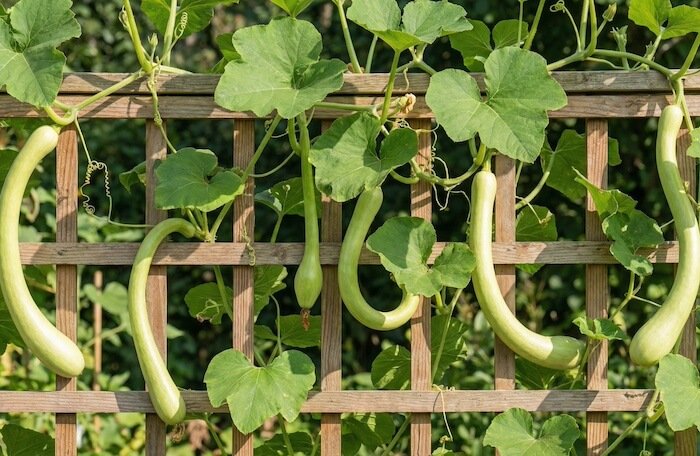 Jei cukinijos užima per daug vietos ant žemės, 'Tromboncino' (arba Zucchetta) yra tobulas sprendimas, nes tai vijoklinis augalas, kurį galima auginti ant tvoros ar arkos. Tai techniškai yra muskatinių moliūgų (C. moschata) atmaina, tačiau Italijoje ji valgoma jauna kaip vasarinė cukinija. Kornelio universiteto duomenimis, ši veislė yra gerokai atsparesnė stiebus graužiantiems kenkėjams nei įprastos cukinijos, o jos skonis yra riešutinis, saldesnis ir visai neturi sėklų ilgame kaklelyje. Vaisiai užauga ilgi, susisukę ir primena tromboną; jei nespėsite jų suvalgyti vasarą, palikite kyboti iki rudens – jie subręs kaip įprastas moliūgas žiemai.