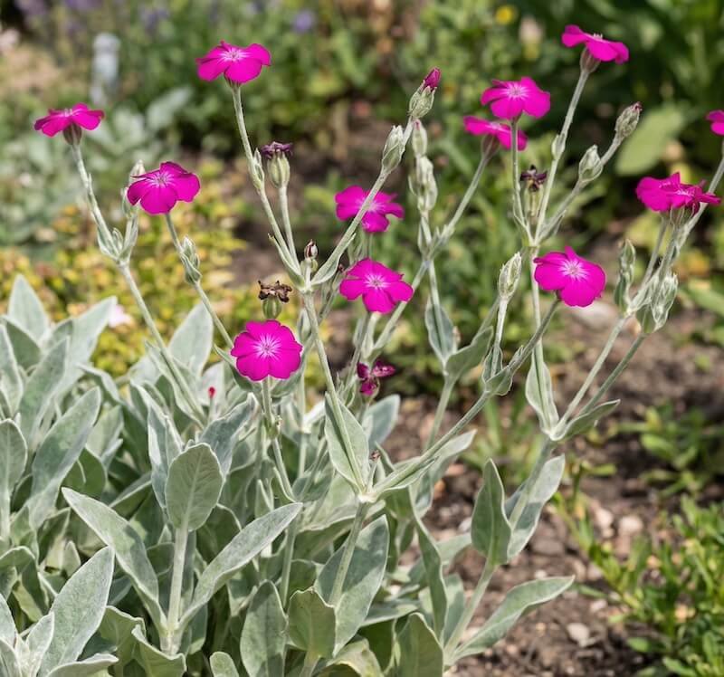 3. Vainikinė naktižiedė (Silene coronaria, sin. Lychnis coronaria) - sidabro ir purpuras