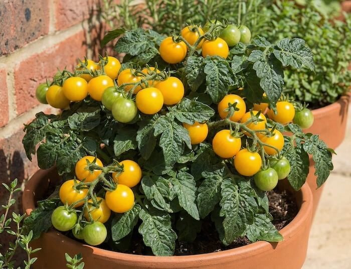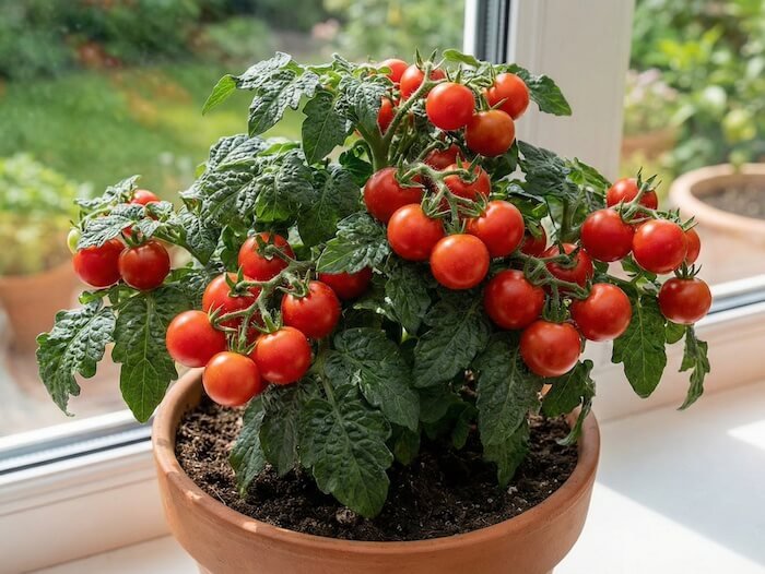 Jei jūsų balkonas yra mažas arba turite tik siaurą palangę, 'Vilma' yra pats saugiausias ir kompaktiškiausias pasirinkimas iš šio trejetuko. Tai klasikinė raudonųjų vyšninių pomidorų veislė, kuri suformuoja itin tvirtą, storu stiebu pasižymintį krūmelį, užaugantį tik iki 30-40 cm aukščio. Kornelio universiteto sodininkystės ekspertai vertina tokias nykštukines veisles dėl jų gebėjimo derėti net ir mažuose, 3-4 litrų talpos vazonuose, kas yra neįmanoma didesnėms veislėms. Dėl savo tvirtos struktūros šiam augalui visiškai nereikia atramų ar rišimo, nes jis puikiai išlaiko savo vaisių svorį ir nevirsta net pučiant stipresniam vėjui. Vaisiai yra klasikinio, subalansuoto „pomidorinio“ skonio, todėl ši veislė yra universaliausia ir reikalauja mažiausiai priežiūros pradedančiajam augintojui.